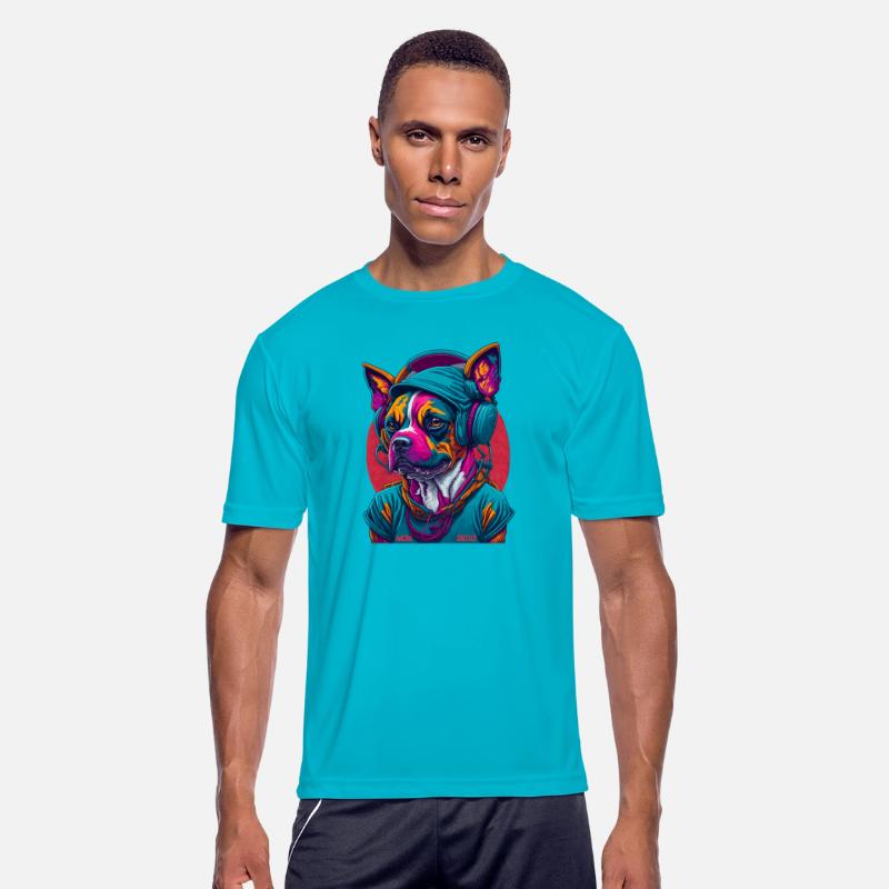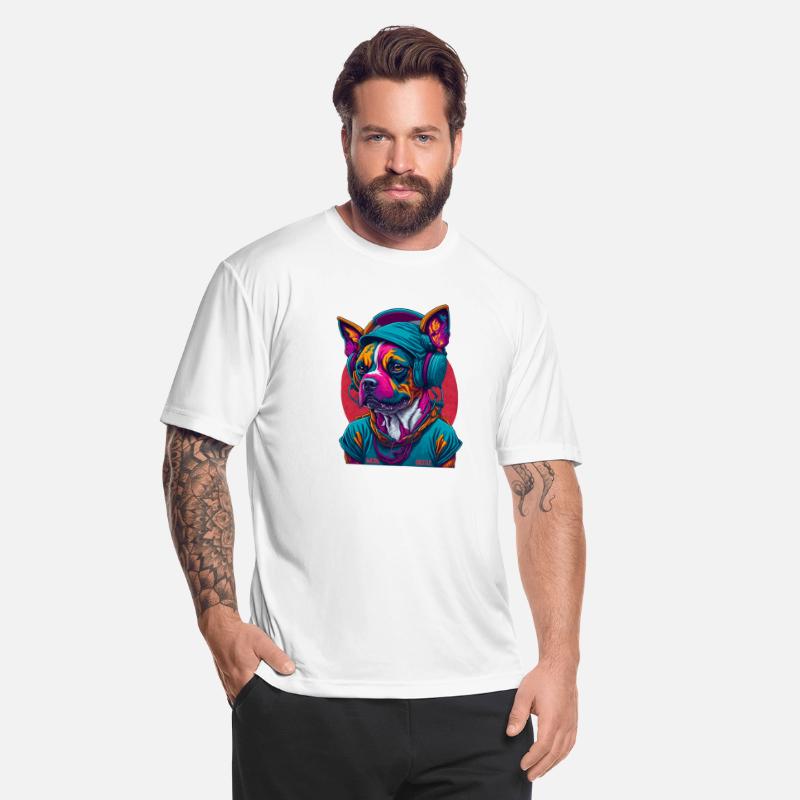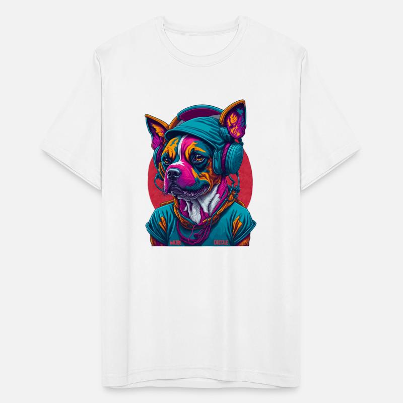 Dog as rapper, wearing headphones