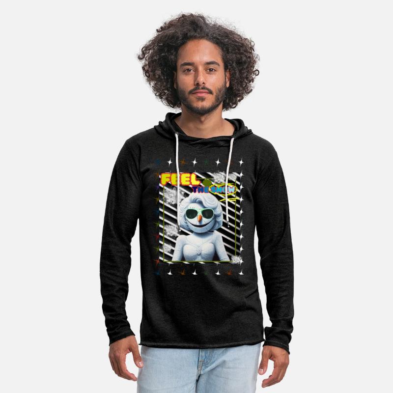 Light as a long sleeve t-shirt with the features of a hoodie, our unisex lightweight terry hoodie is a super-versatile choice. When the weather is a little too cold for a short-sleeved tee and a little too warm for a heavy hoodie, this is the way to go. Terrycloth textures and rough-cut hems make this item an eye-catching choice. Bottom hem and sleeves have a raw edge.